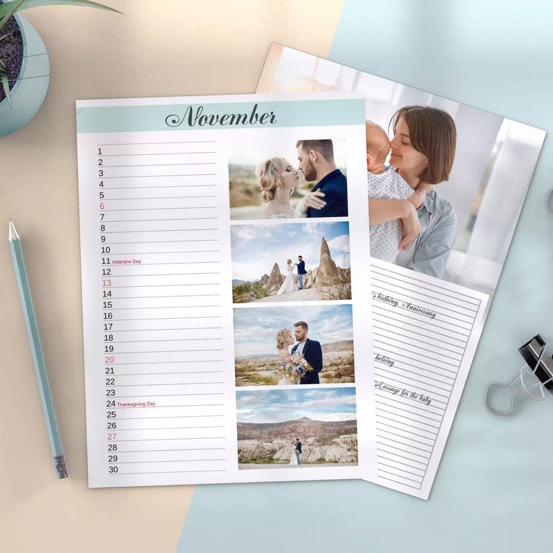 The calendar should be applied on images, their own holidays, celebrations, name and other important days.